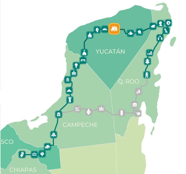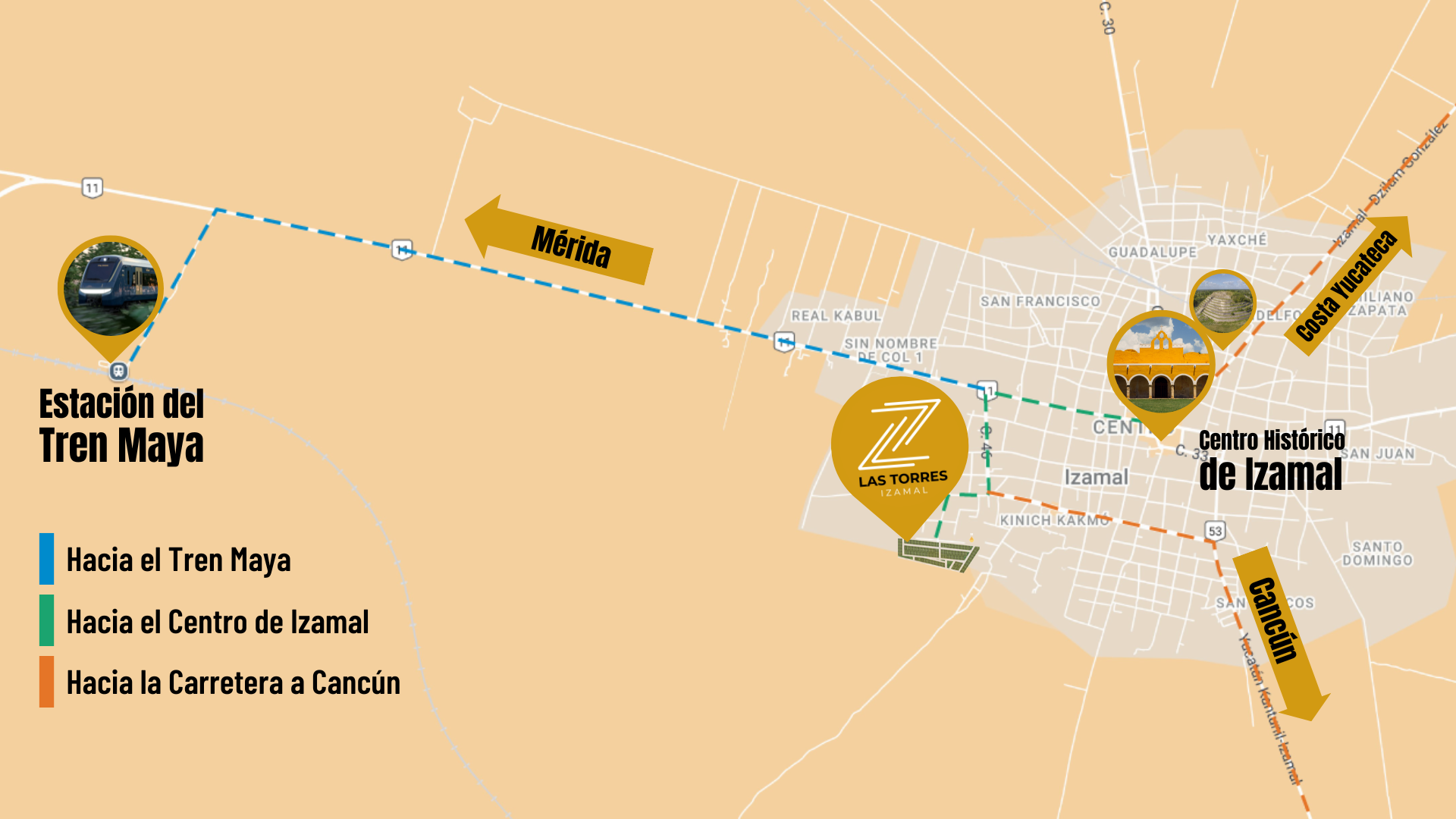 Ubicada al poniente de la ciudad, la estación del Tren Maya de Izamal tiene conectividad directa con: